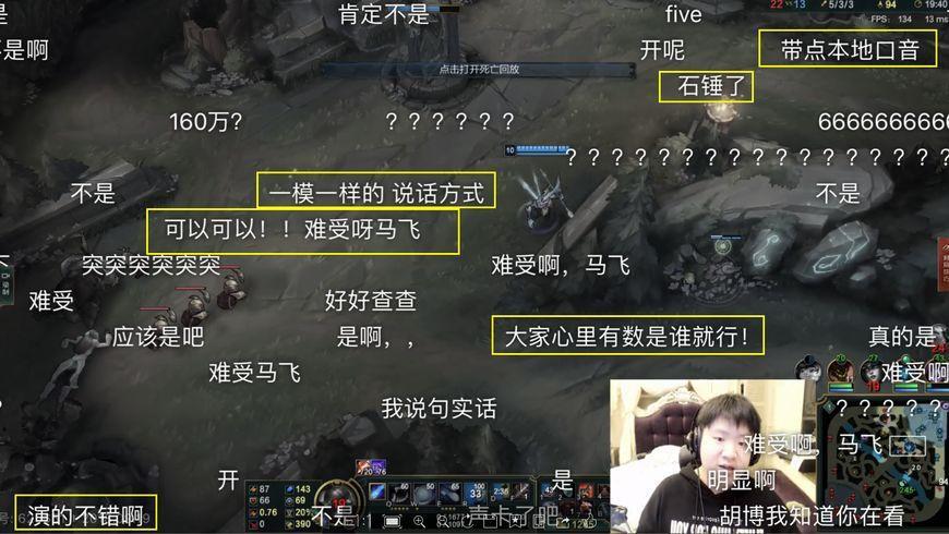 在复播中马飞飞没有选择绝地求生而是选择了英雄联盟,并且在游戏中邀请了他的几位朋友一同游戏,当中更有一位好友的说话语气酷似卢本伟,一时引起了观众热议。但随后马飞也在直播中表示,这个打野只是一起玩游戏认识的网友,因为是上海人所以在现实中也见过面,这次复播才拉他一起玩的!
