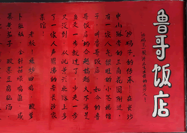 1)鲁哥饭店(培元桥老店):老派长沙菜,只有长沙人才懂的味道。