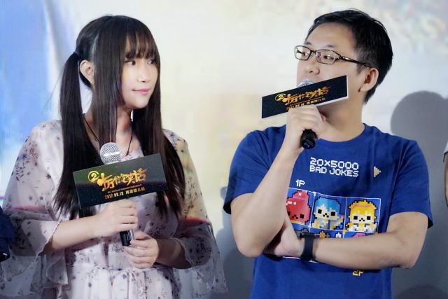 藤老师这次饰演了山新的爸爸,不对,雅典娜的爸爸宙斯,并且在发布会后台成功和孙八一老师合影留念。
