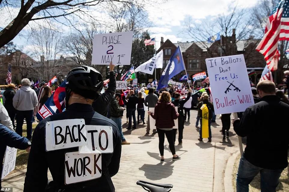 鈥滃姜鎮嶁€濈殑瀵嗘瓏鏍瑰窞澶т紬寮€灞曚簡鈥滀腑鏂繃鍒嗗垎闅斺€濈殑鎸佹灙鐮村潖銆傛暟鍗冨悕鐮村潖鑰呬細鍚堝湪宸炲簻锛屾湁鐨勪互鑷抽珮鍙壒鏈楁櫘鏄旀棩绔為€夋椂涓€鍙ュ鍙椾簤璁殑鏍囪鈥渓ock her up鈥?(鎶婂ス闂捣鏉ワ紒) 鑰屾鍒昏繖涓ス锛屾槸瀵嗘瓏鏍瑰窞瀹楪retchen Whitmer锛屽ス鏄壒鏈楁櫘鐨勬闂簬澶淬€傜壒鏈楁櫘浠ヨ嚦涓嶆効鍦ㄥ叕鐒跺満鎵€鍙ス鐨勫悕瀛楋紝鑰屾槸鎶奧hitmer绉颁负鈥滆皝浜哄コ浜衡€濄€?/p>