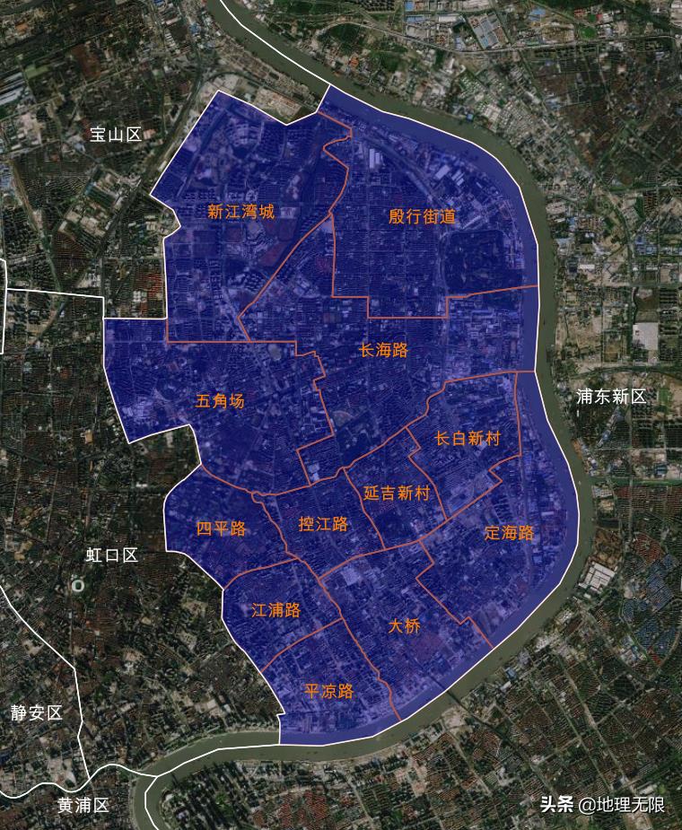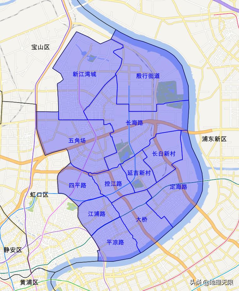 1、新江湾城街道,面积8.6平方公里,办事处地址:殷行路990号。