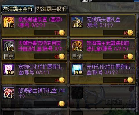 怒海金币可以在赛丽亚房间的怒海霸主处兑换各种道具,比较有价值的就是无限猫头鹰、宠物技能宝珠和宠物、光环幻化栏了,如果只买一套那么刚好30个金币可以换一个宠物幻化栏和一个光环幻化栏,价值也在60元左右,还是挺划算的。