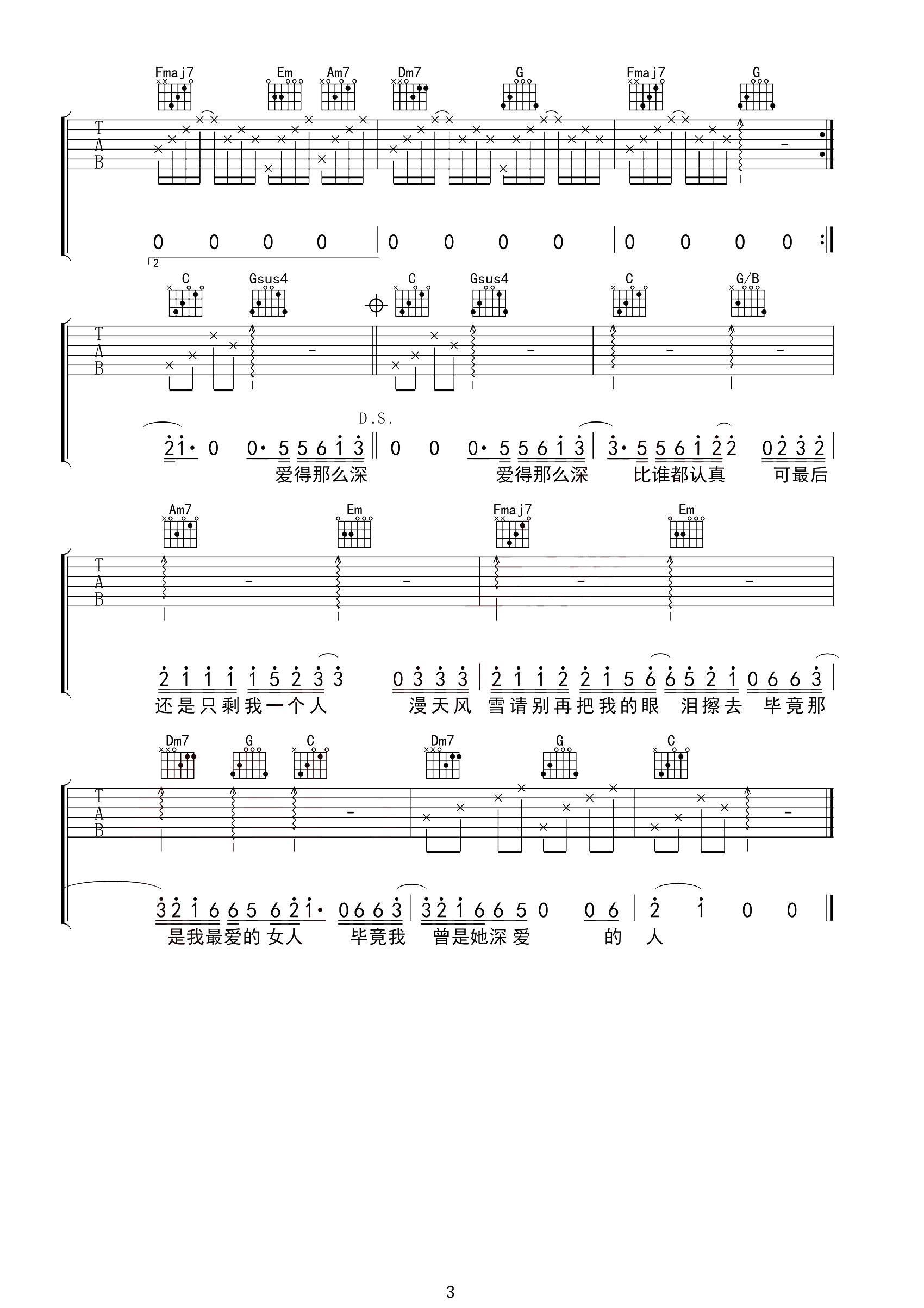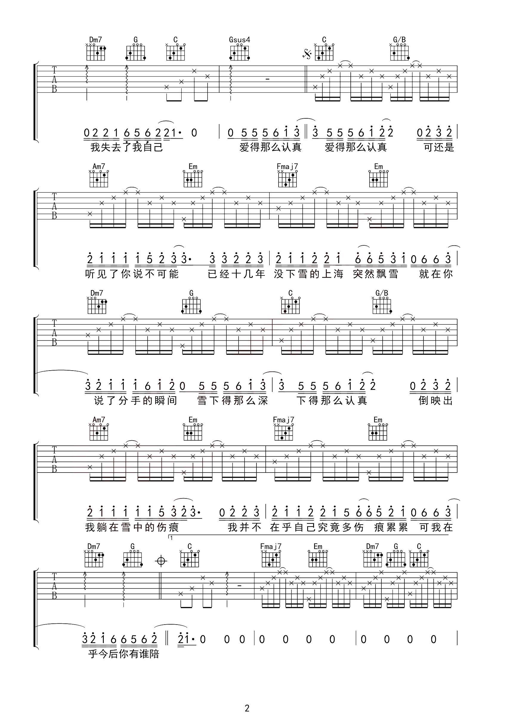 同学们可以对照谱子和音频来演奏。原调#C调,本谱选用C调,变调夹需夹1品。以下是薛之谦的《认真的雪》音频欣赏: