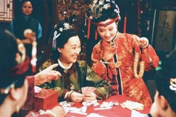 本回余波,贾母批完邢夫人,立马喊人,立即组人玩牌。全是“朋友圈”的人。上桌的除了贾母本人,还有王夫人、薛姨妈、凤姐、鸳鸯,鸳鸯是给贾母和薛姨妈看牌的。没上桌的,几个姊妹包括探春在内,在旁边也跟着凑热闹。