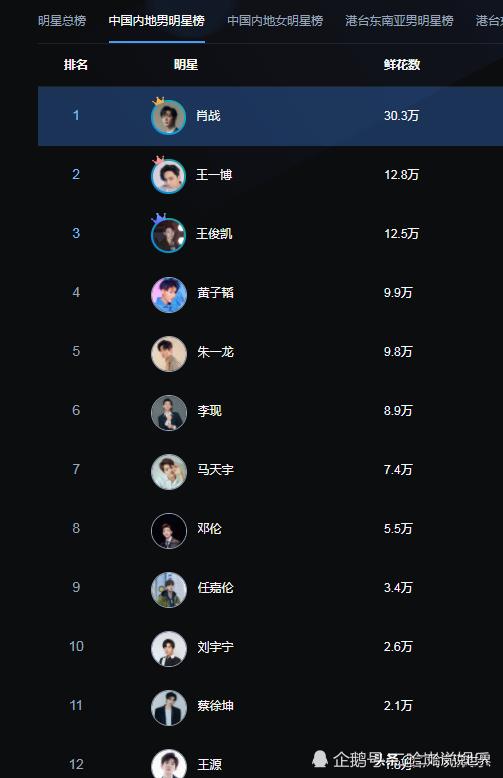最后就是稳居第一的肖战啦,虽然肖战十分低调,已经一个月没有更新微博啦,但是他的粉丝依然在默默的支持他,他的人气排在第一名,并且收获了30万的鲜花数哦,而第二名的王一博才12.8万的鲜花数哦,可谓是凭实力获得了第一名啊!那你期待肖战的《余生请多指教》吗?
