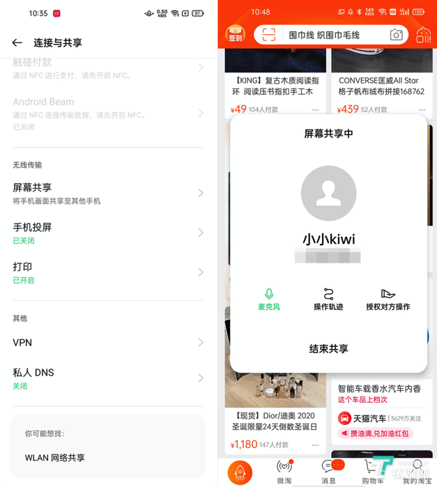 互联后,两台手机可以共享屏幕、语音、操作轨迹以及互换授权,对于老年人的使用教学、分享购物内容以及工作信息等场景下,该功能可以更加方便简洁。
