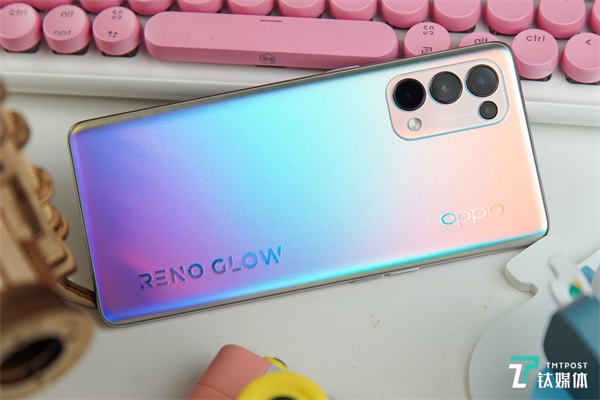 上一代Reno4中,OPPO率先引入了Reno Glow晶钻工艺,其相比于传统的AG玻璃工艺,可以大幅改善后盖易粘指纹、哑光不通透等问题。