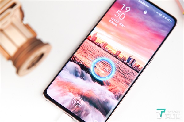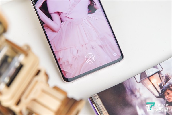 相比于上一代,Reno5 Pro的屏下指纹解锁位置更接近底部。