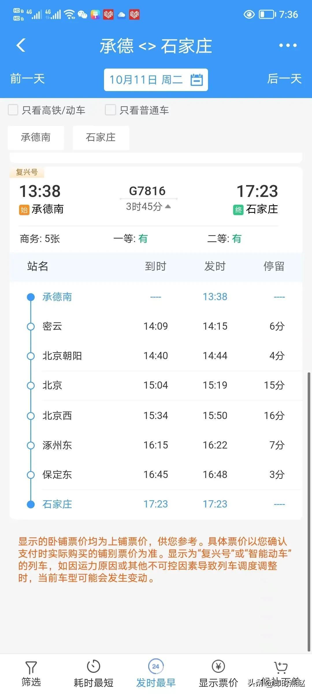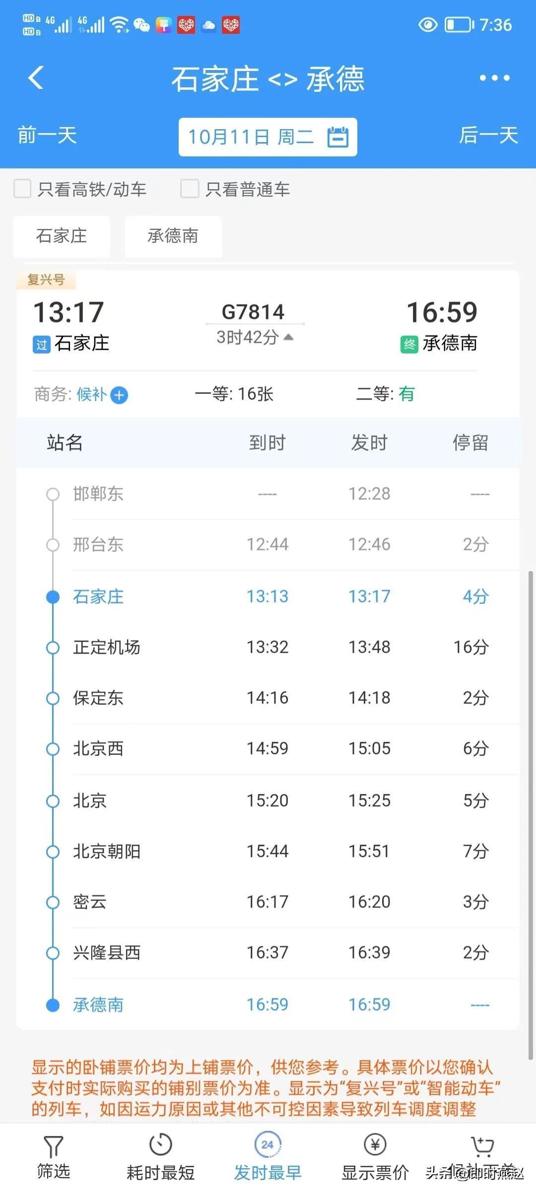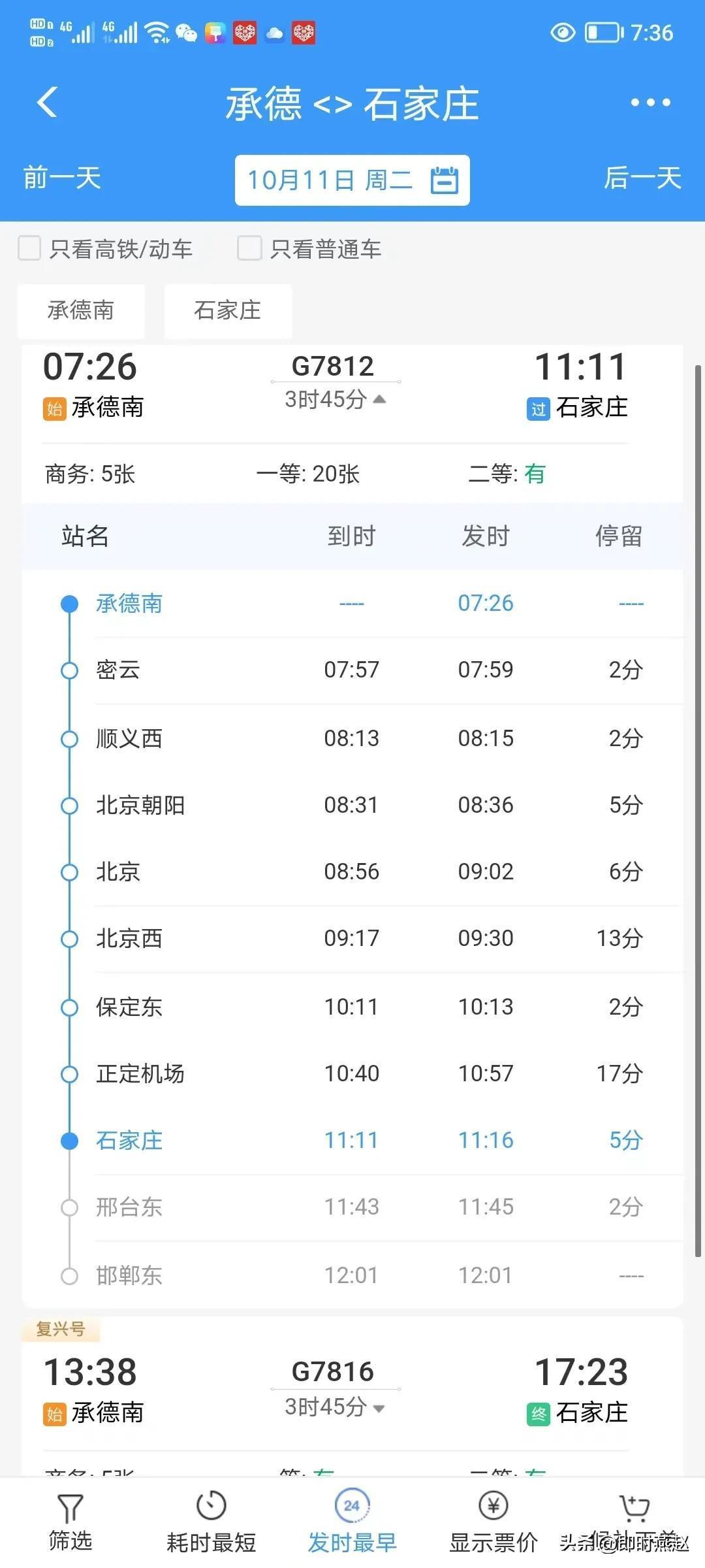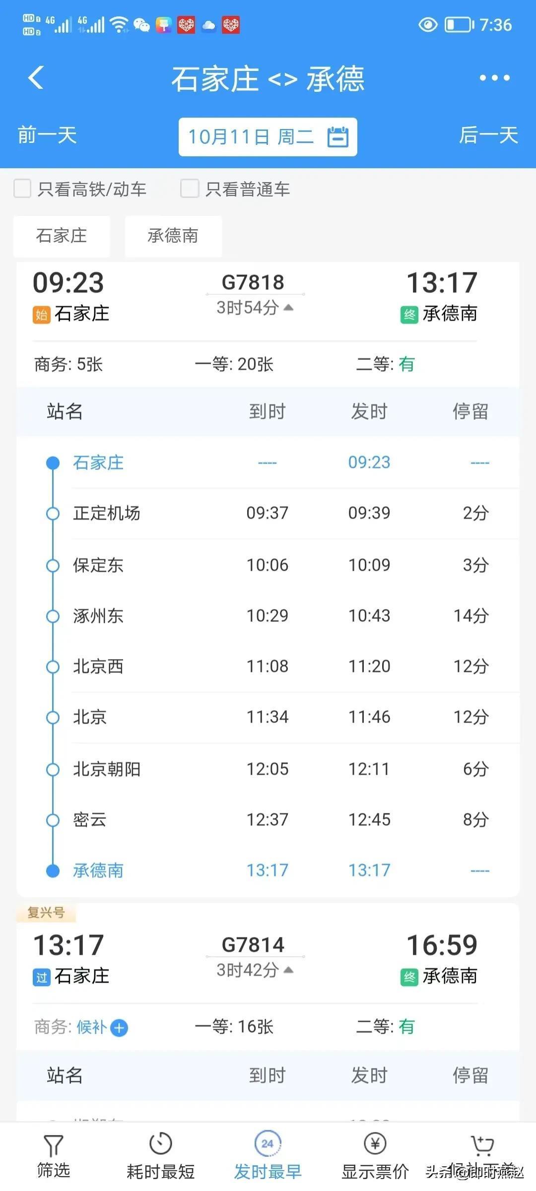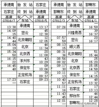 承德南终到站石家庄对开一列G7816次13:38开石家庄终到站17:23分。石家庄始发站G7818次09:23开终到站承德南13:17分,请以实际为准,具体时刻停站附图。