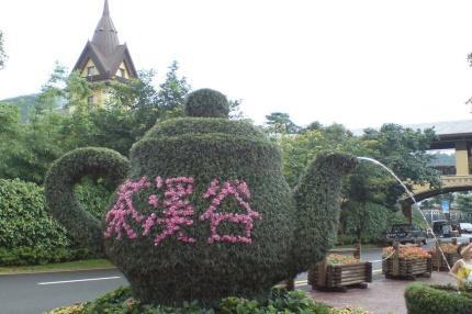 茶溪谷的著名景点有:茵特拉根、湿地花园、茶翁古镇、三洲茶园这四个游览区。