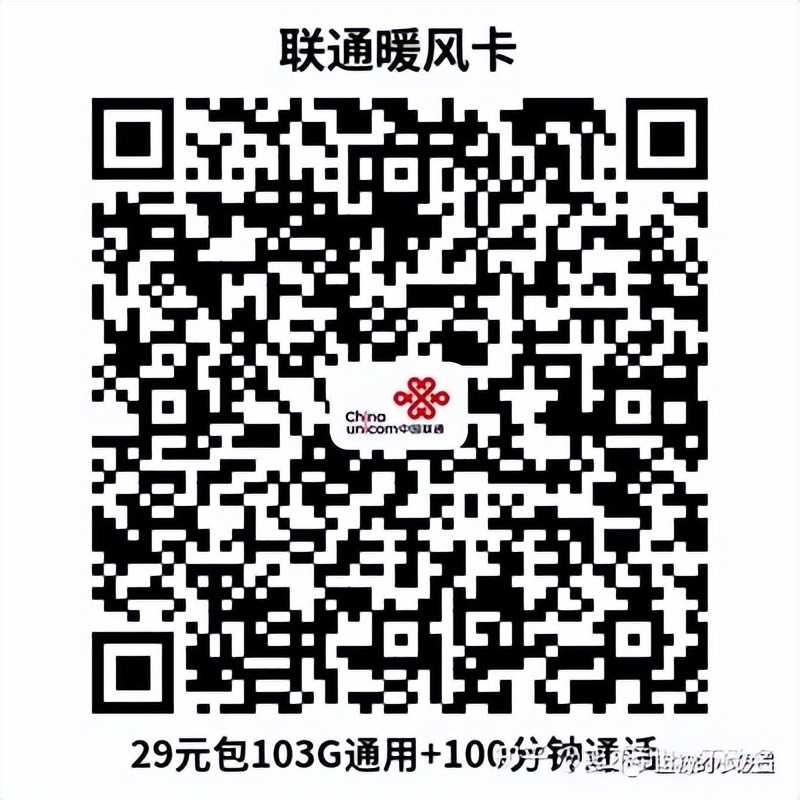 联通暖风卡,29元包103G通用+100分钟通话(激活当月扣全月费用,套餐当月全额到账;充值100元享受2年优惠政策,充值200元享受4年优惠政策,到期后可继续充值100元或200元续约,套餐不变);免费办理。
