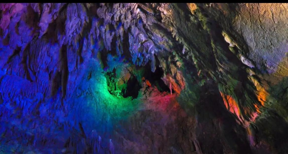 顺着台阶穿溶洞赏钟乳石,回程者地下暗河出口还能看到山洞里的玄关。