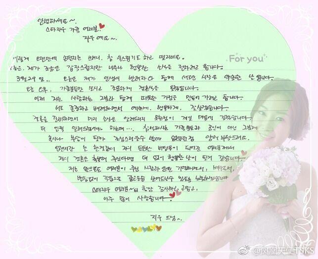 ▲崔智友亲笔信告知粉丝们她的喜讯