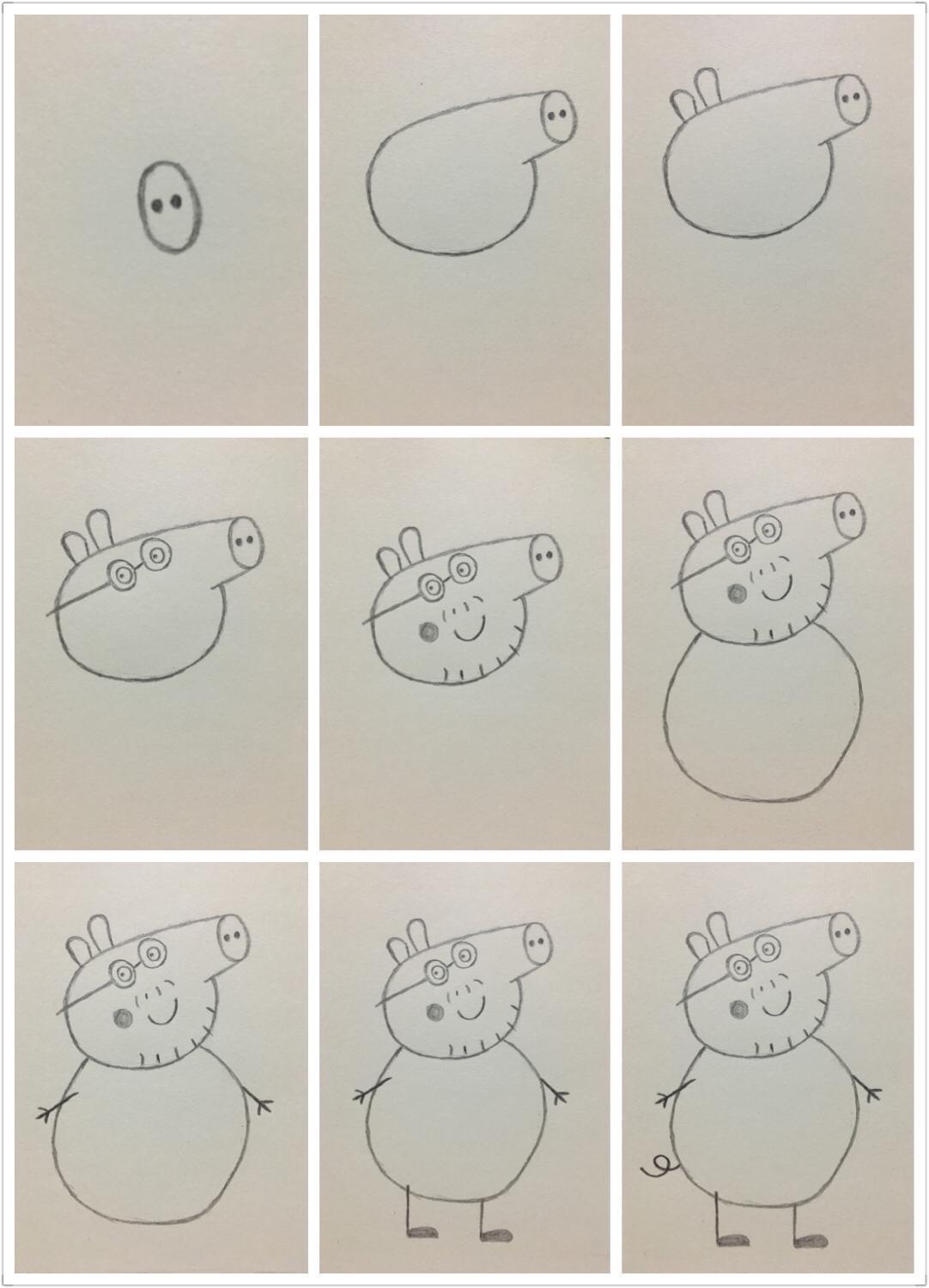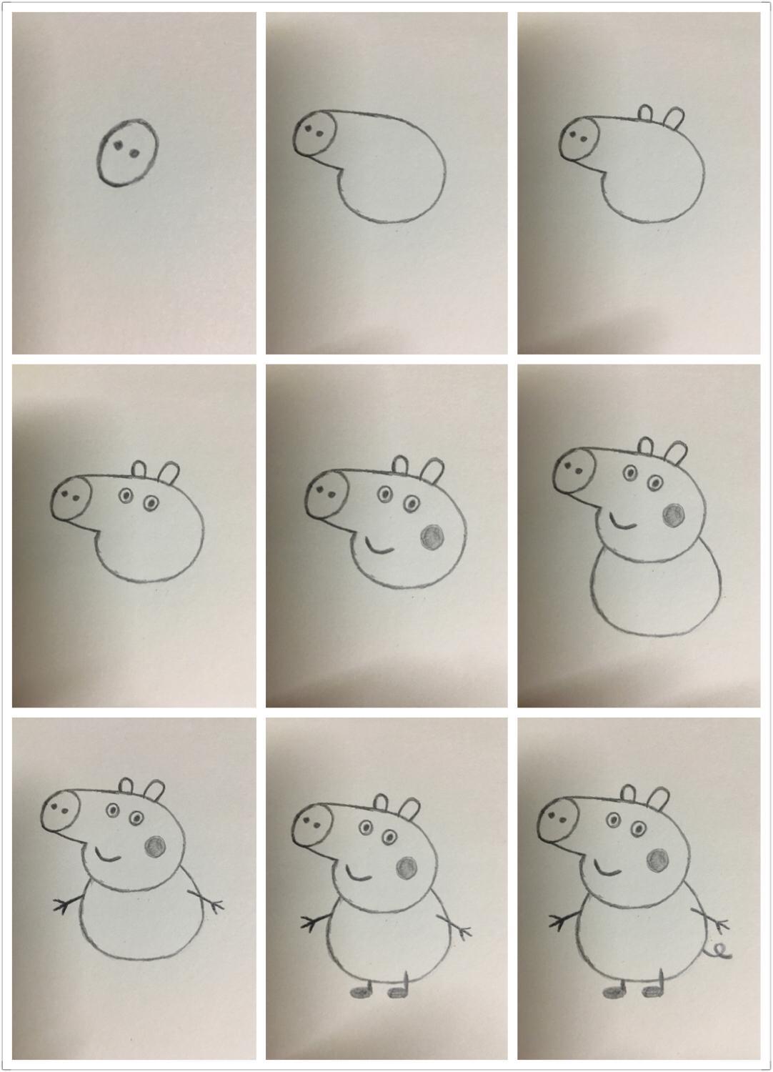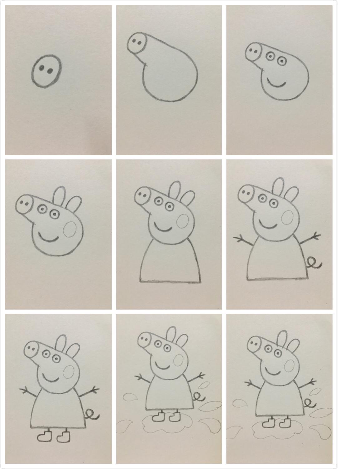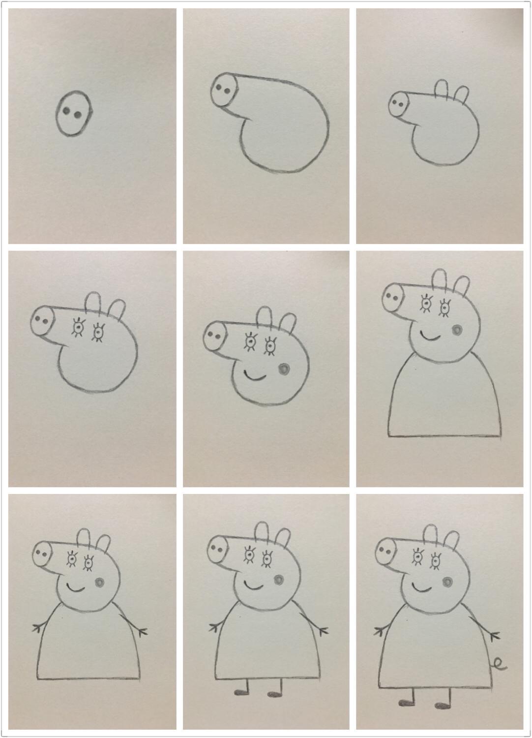 小猪佩奇的画法,和全家福的朝向有所不同,需要反过来画。