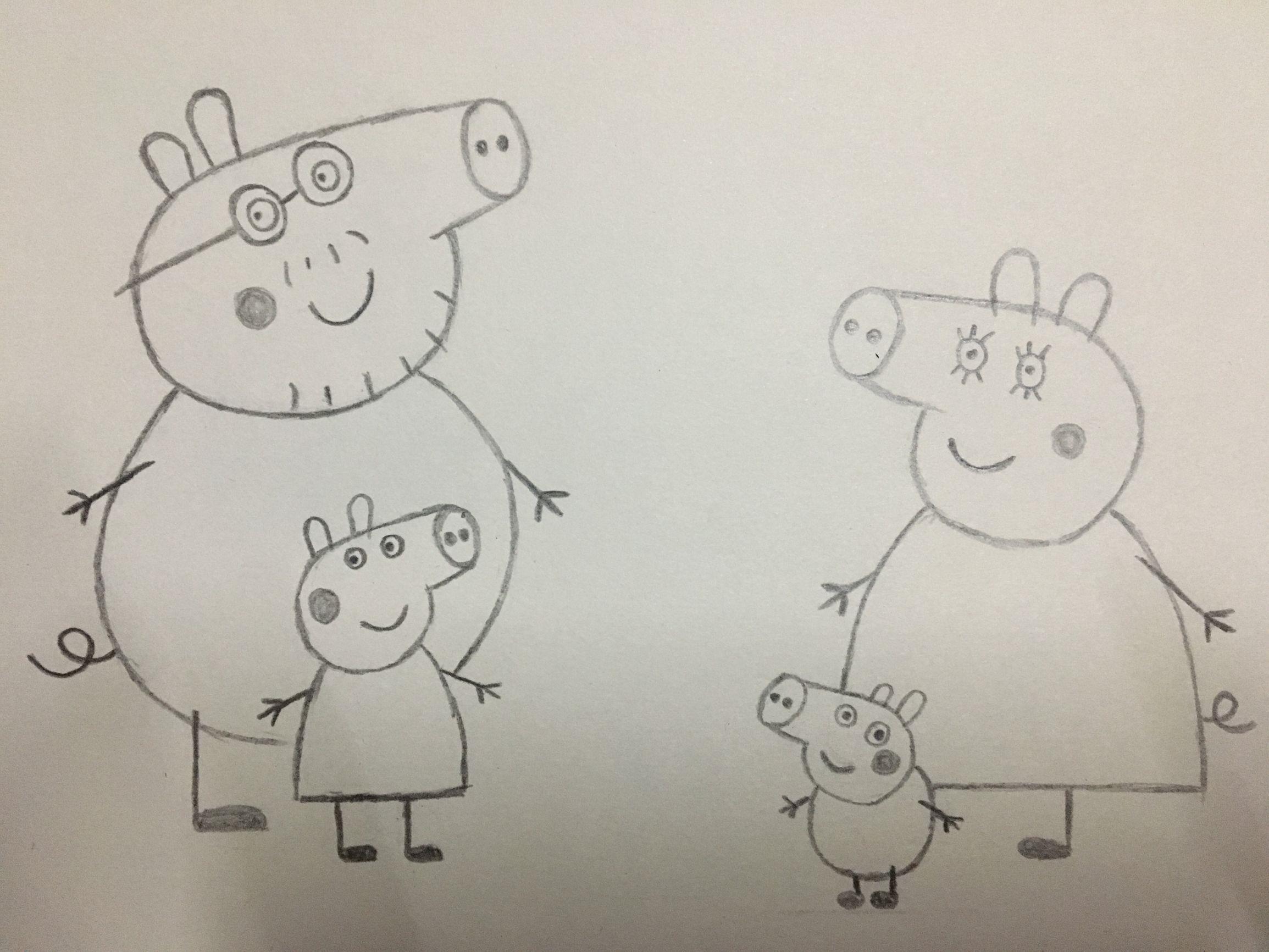 之前小编已经分别分享了小猪佩奇,佩奇的弟弟,佩奇的爸爸和佩奇妈妈的画法了,这里就不详细画了