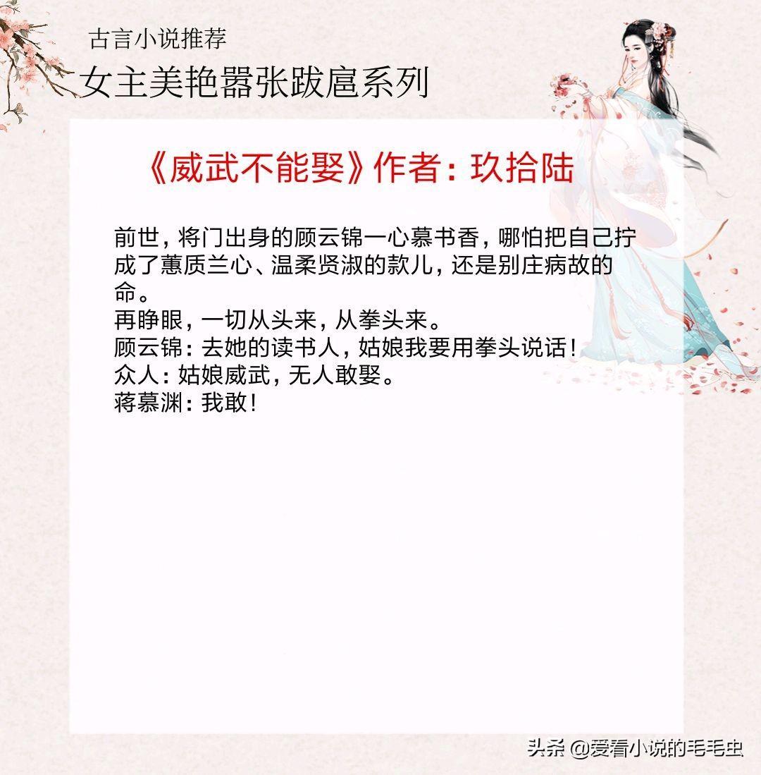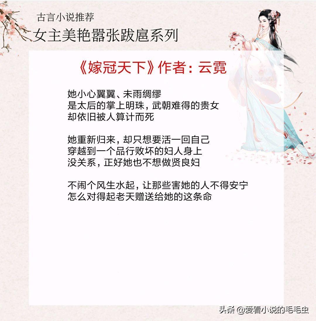 大家好,我是毛毛虫,今天推荐5本女主美艳嚣张跋扈的古言,她张扬霸气做自己,活得肆意舒心!(标题为第五本)