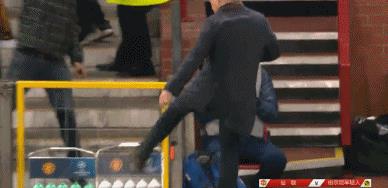 GIF:目睹费莱尼绝杀,穆里尼奥怒砸水瓶庆祝