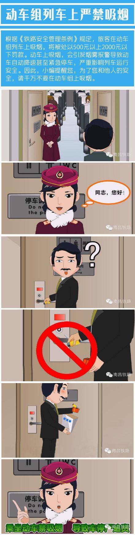 根据《铁路安全管理条例》规定,旅客在动车组列车上吸烟,将被处以500元以上2000元以下罚款。动车上吸烟,会引发烟雾报警导致动车自动降速甚至紧急停车,严重影响列车运行安全。因此,小编提醒您,为了您和他人的安全,请千万不要在动车组上吸烟。