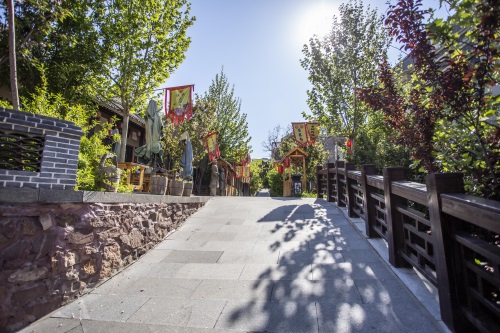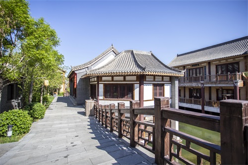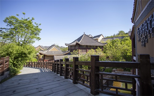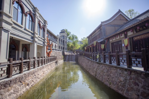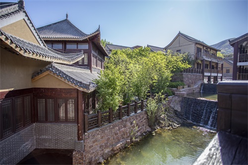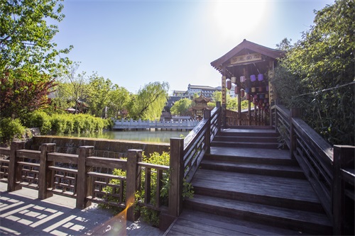 这里有一座古镇,德明古镇。德明古镇位于河北省鹿泉区西部长青旅游度假区内,坐落在风景秀丽的问情谷,是一座以古老璀璨的元曲文化为主题的文化特色小镇,古镇中的建筑吸纳了金元明清时期我国建筑的精华,桥楼榭亭设计精巧、古朴厚重、典雅大气,一条清澈的河水穿镇而过,让游人体验到秦淮河边的古老风情。