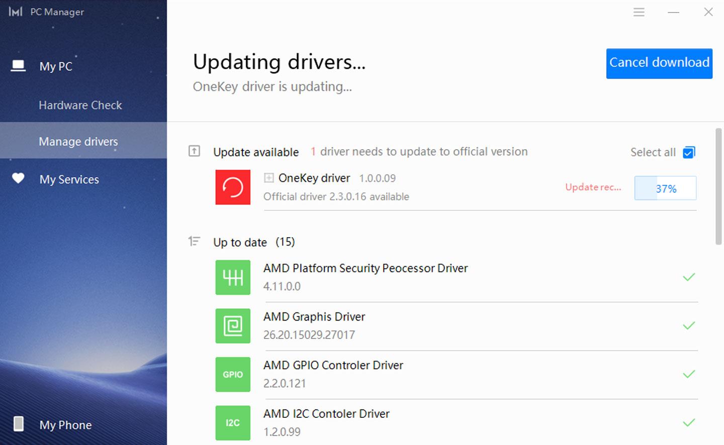 ▼电脑管家中也能进行驱动程序的更新。