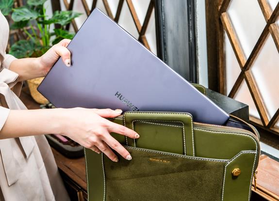 MateBook D15 的重量仅 1.62 Kg,厚度 16.9 mm,能轻松放入一般的公事包携带