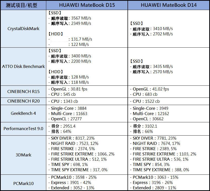 MateBook D15 VS D14 性能一览