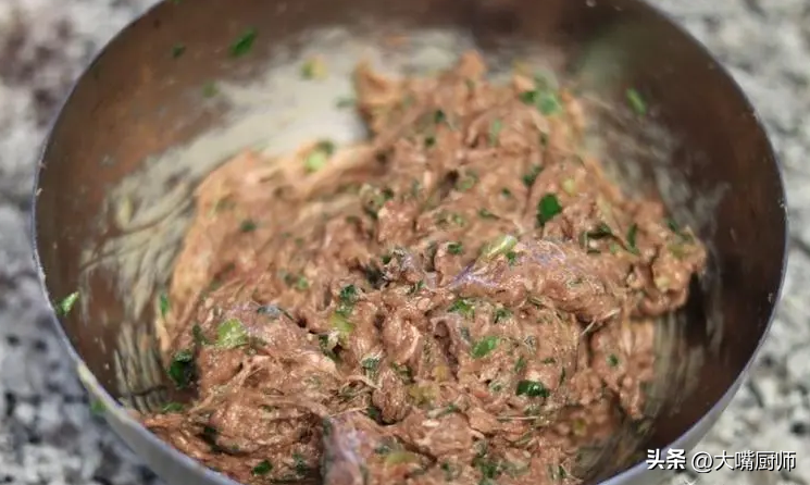 2、调肉馅时要加鸡蛋、葱姜水,这样饺子馅才会鲜嫩多汁,而且没有腥味,鲜香可口。搅肉馅时要顺着一个方向搅,这样肉馅才能发黏、成团。一会儿左一会儿右就会散。