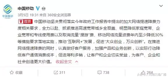 对于即将到来的通信降费最新举措,有业内资深分析人士指出,取消流量“漫游费”,受益人群覆盖范围将会非常广泛,“从月移动资费10元到月移动资费150元的用户,都可能成为受益者”。
