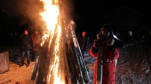 景区的冬天下午4点钟天就黑了,还可以赶一场景区里的东北大集,在大红灯笼高高挂,冰糖葫芦串串香的氛围里,在零下20的气温下,喝一碗正宗的东北羊肉汤,还可以来一根冰棍儿挑战舌尖,或是围着火红篝火扭一扭大秧歌儿。