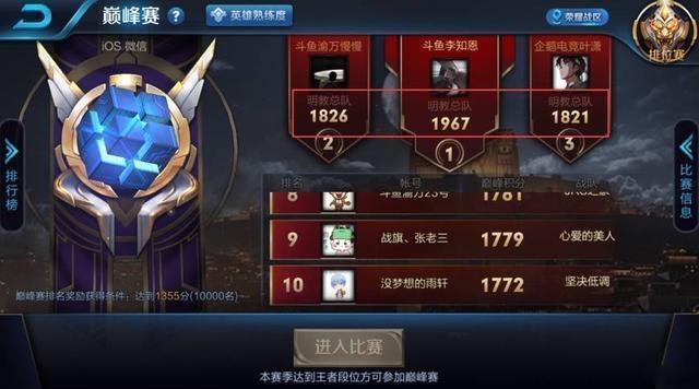 王者荣耀在S10版本结束进入S11之后,天美在峡谷中增加了新的游戏对局模式,也就是现在最火爆的巅峰赛模式,在王者荣耀游戏中也增加了巅峰赛排行榜。想要参加巅峰赛是需要满足一些条件,每个赛季都要拿到王者印记,而策划的最初想法也是为了维护一些高端玩家的利益,创造一个公平公正的游戏对局环境,所以巅峰赛应运而生。