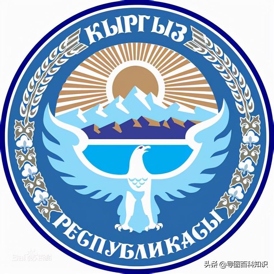 国徽:圆形。为圆形,以蓝、金为主色。中间上方为太阳在天山升起之景象,下为展翅的雄鹰。外围书写“吉尔吉斯共和国”,并以麦穗和棉花装饰。