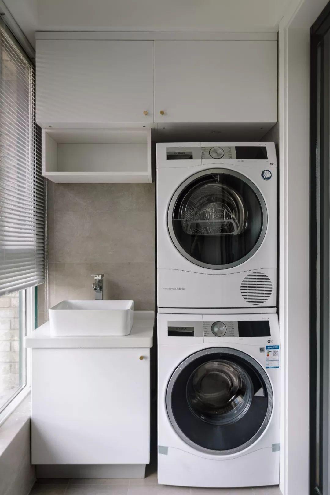 小户型家庭建议安装烘干机,衣服洗完之后直接使用烘干机烘干,使用方便,阳台仅需预留少部分晾晒衣物的晾衣空间即可,插座参考高度:100-120cm。