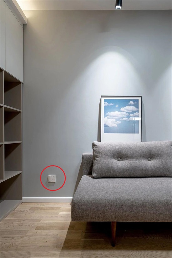 沙发两侧的插座参考高度:75cm,需要注意提前规划好沙发的位置,不要等到家具入场之后才发现沙发挡住了插座。