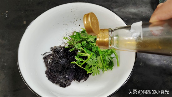 第六步:出锅前要在汤碗中加入香菜碎,香油几滴,黑胡椒粉少许,而后将汤水冲入碗中,喝的时候搅拌一下即可。
