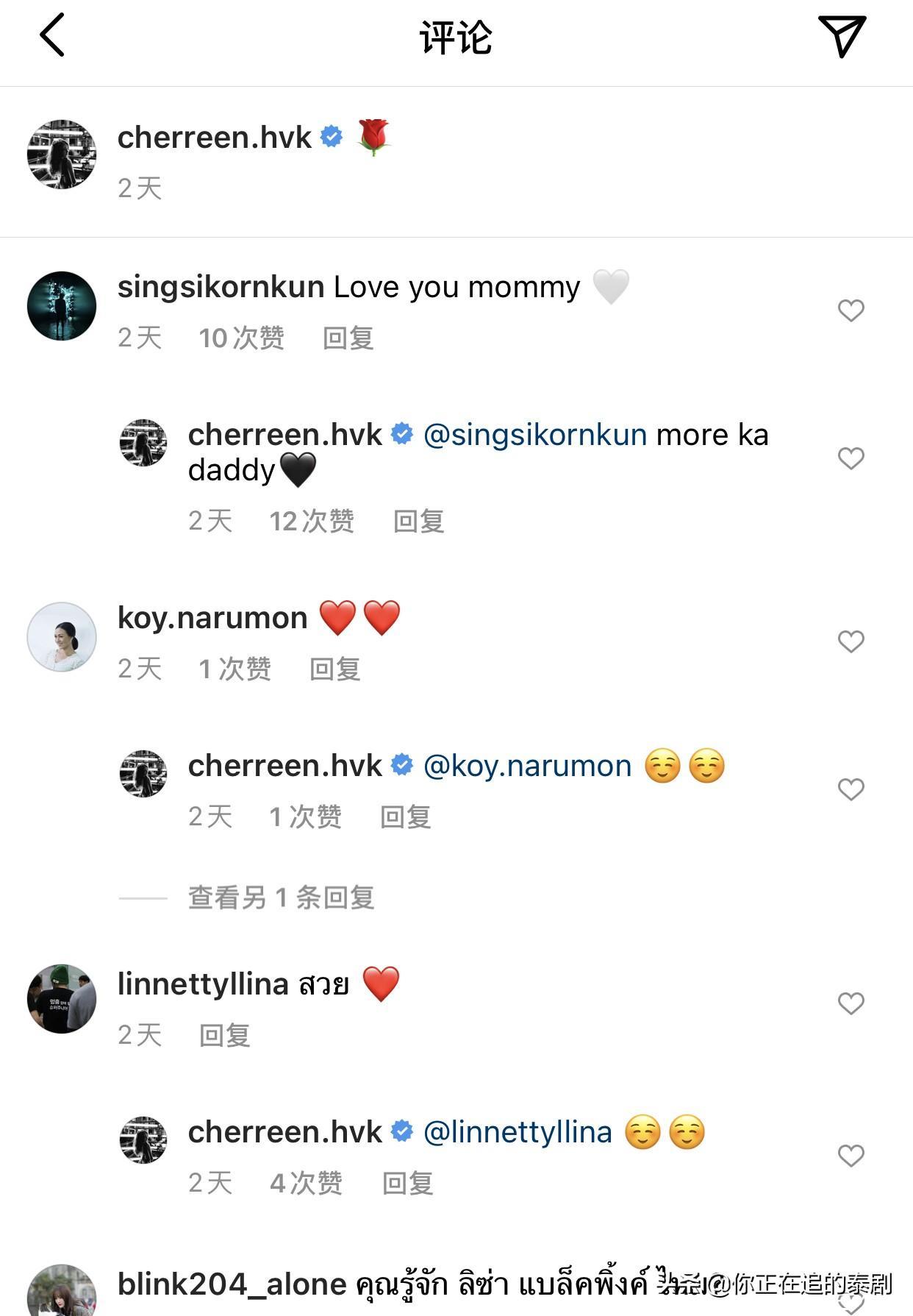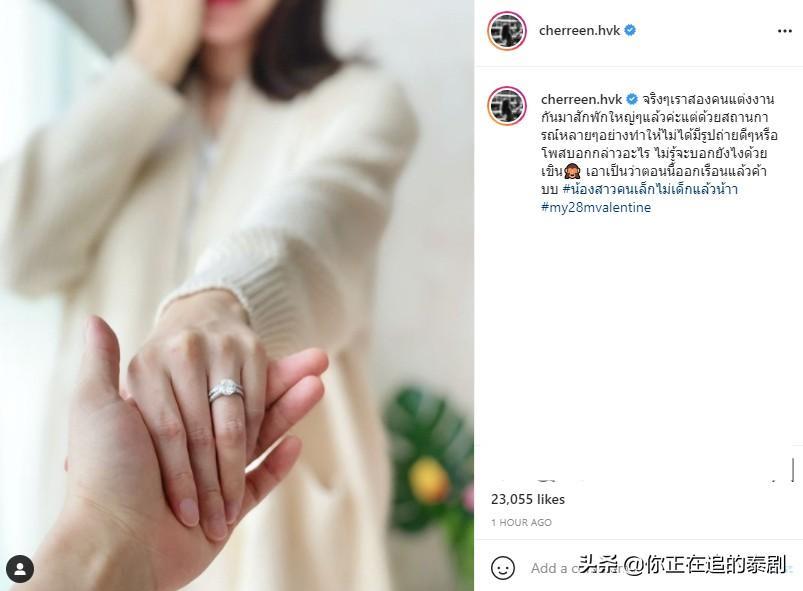 Nichkhun(尼坤)当年出演韩国综艺节目《我们结婚了》 (尼坤宋茜维尼夫妇)的时候,Cherreen Nachjaree就曾在泰国片段中惊喜出镜。Cherreen是泰国知名女演员及歌手,2013年获得《The Star 9》歌唱节目第8名出道,曾主演泰剧《心之影》《云中宝座》《秘恋之 我亲爱的狗狗学长》《不期而爱》等作品,其中《秘恋之 我亲爱的狗狗学长》让她爆红,并与Kang一度成为热门CP。