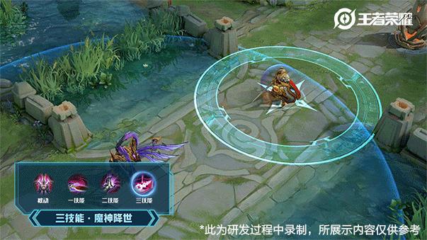 主要是大招的改变,当魔王从大招的法阵苏醒后,将周围废墟的灵魂都吸入自己体内,然后释放出黑暗的魂魄,幻化成自己的武器,就如同一位天神从天而降,大杀四方。