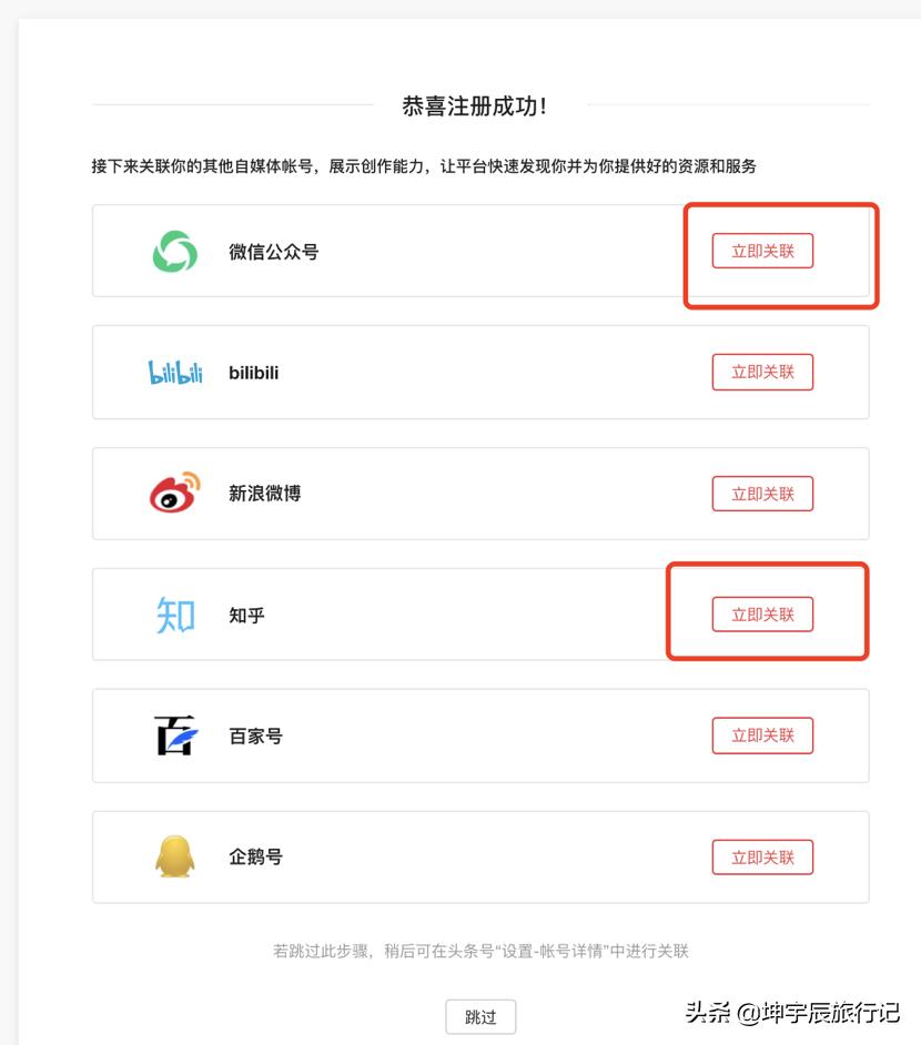 Setp5: 注册成功之后可以关联微信公众号,新浪知乎等,不相关联就 直接跳过