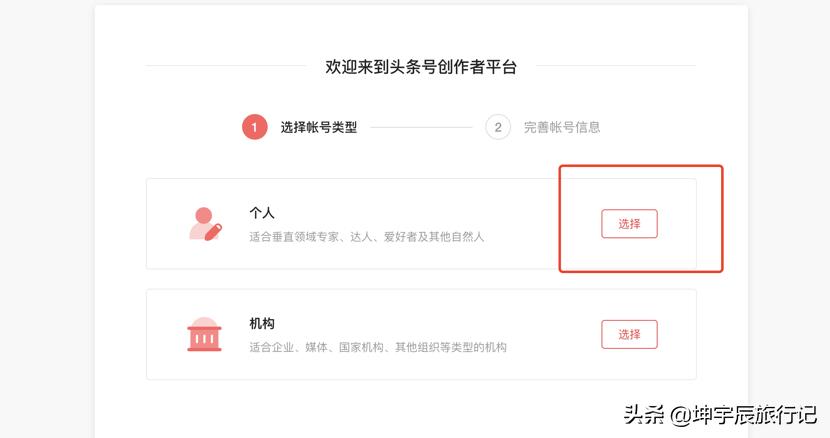 setp3: 个人注册选择个人(注:个人可以注册一个头条号,机构可以注册2个头条号)