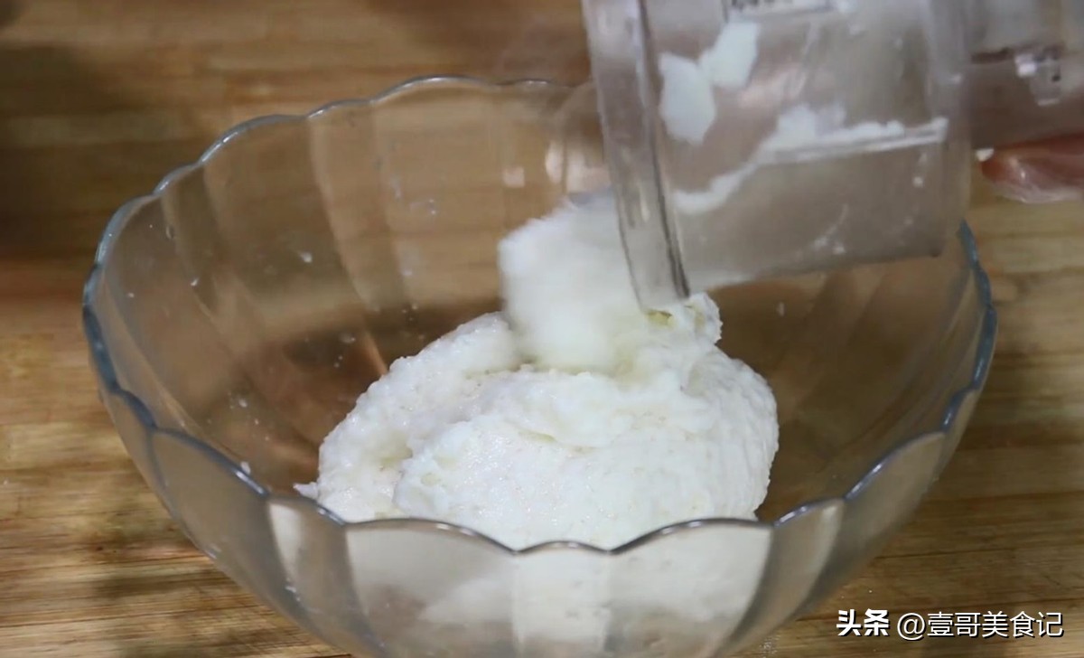6.准备80克面粉,先往山药泥中倒进去一半,用筷子进行搅拌,要把面粉搅进山药泥中,接着,把剩下的一半面粉也倒进去,再次进行搅拌,直到最后把面粉和山药泥搅拌成糊状。