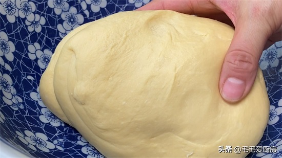 4,饧到时间后继续揣面,这个时候面很软,还是用同样的手法从边上往中间提拉,再往中间揣面慢慢的面越揣越光,然后再抹点油再醒面10分钟。