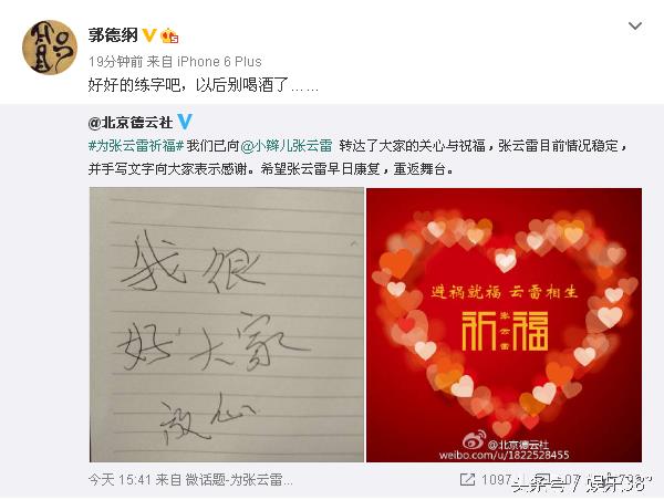 目前经过及时治疗,其徒弟伤情稳定,德云社作为官方平台也第一时间在微博给大家报平安。只是作为最会搞笑的表演团体,德云社也是逗逼范十足,在晒出的微博里,一张手写的“我很好,请大家放心”格外显眼,其水平目测也就2年级的水平。而郭德纲的转发评论更是搞笑!郭老师语重心长的说:好好的练字吧,以后别喝酒了…!关怀之余更让人忍俊不禁,郭德纲果然是郭德纲,姜还是老的辣!