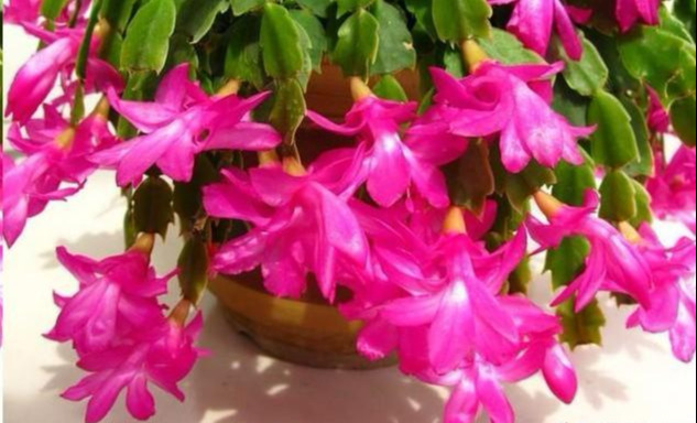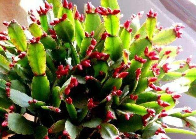 经过一两个月的生长,叶片变得肥厚了饱满了。到了10月份左右已经进入短日照的模式了。蟹爪兰属于短日照的植物,就比较适合蟹爪兰开花了。这时要补充以磷钾肥为主的肥料。每个月浇两次的磷酸二氢钾,或者给叶片喷湿的方法。