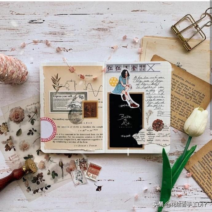 手账素材多种多样,除了市面上出售的手账贴纸、手账胶带,还有各种随手可以得到的手账素材,比如邮票、报纸、商场小票、旧的明信片、英文报纸,做衣服剩下的花边、蕾丝和各种花色的小布头~~统统可以拿来做手账呀~~