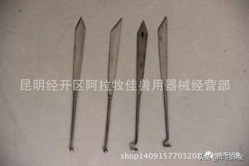 劁牙猪(公猪)割开猪卵,取出睾丸就行;劁草猪(母猪)要根据“上一摸下一摸,上下不离猪尿泡;大肠热,小肠凉,只有花子硬邦邦”的诀法去实施。找到花子后,趁猪吸气的当口下刀。开口之后,将手术刀调转,用其把儿塞进肚子一搅,花子就带出来,花子一定要割干净,不割干净就是走花子。伤口缝合以后要给伤口上吐口唾沫,以防感染。还得抓住猪后腿抖几下,把肠子抖顺,防止肠子相互粘住,猪只吃食不长膘。