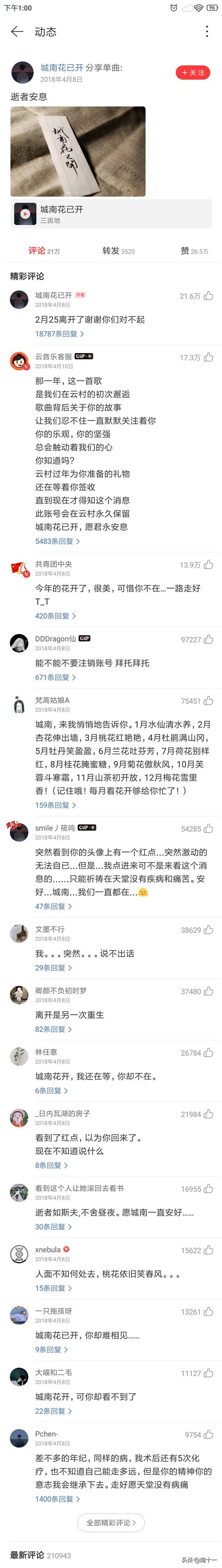 网易云音乐id为城南花已开,是一位骨癌晚期的少年