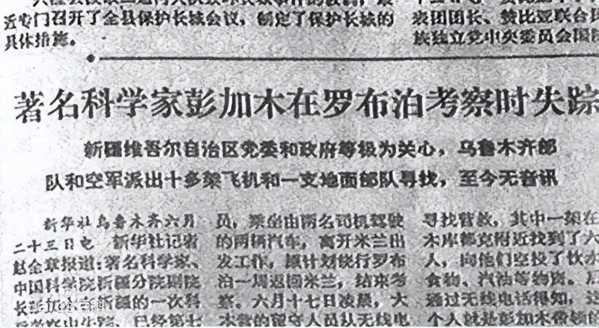 当年彭同志去罗布泊的任务不仅仅是对外公布的原因,在过程中还发生了很多事情,而该机构正式成立的直接原因是彭加木的失踪。当时官方新闻,彭带队去罗布泊是为了地质勘探,但是他失踪的时候,科考队伍里有生化专家和植物学家,却没有地质学家,因此在这一点上,可能类似该网友说的,当时科考队的任务,并不只是公开宣布的原因。