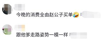 还有网友观察更仔细,称:“跟他爹走路姿势一模一样。”