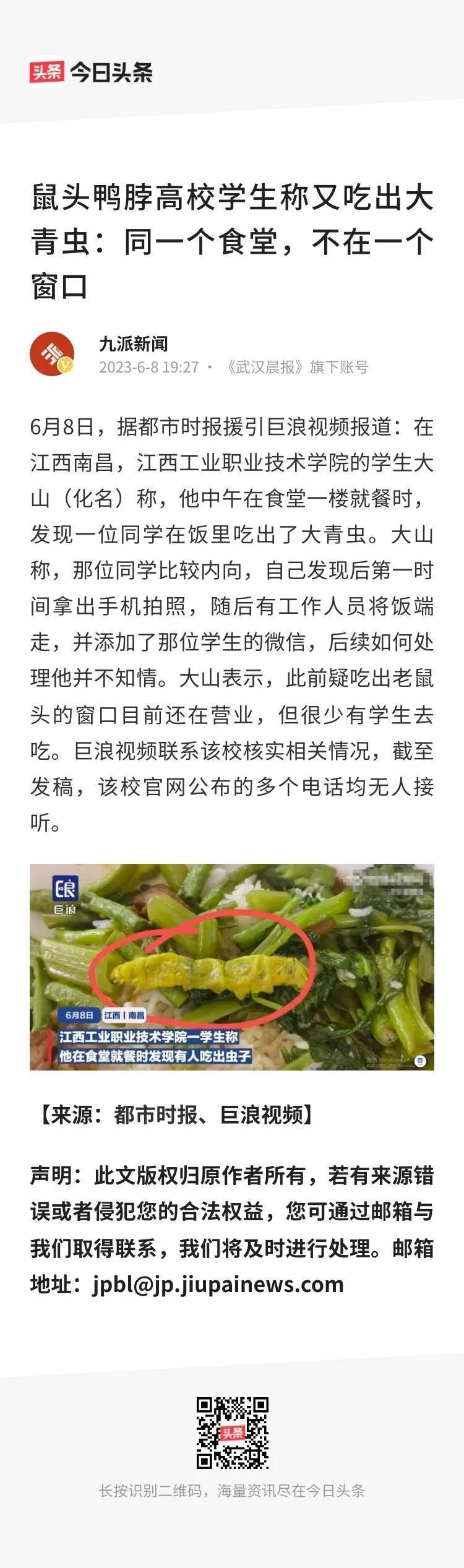 事情的关键是:原来江西这个学校前几天刚刚才经历过“鼠头鸭”事件。那这要不出名确实很难。