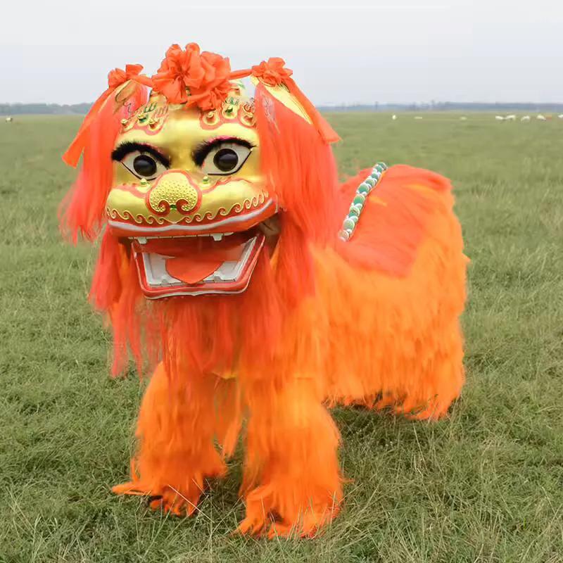 北方 狮子表演时共需舞员三人,一人舞狮前身呀(即狮头),一人舞狮后身,(即狮尾),另一个饰武士,领导起舞。