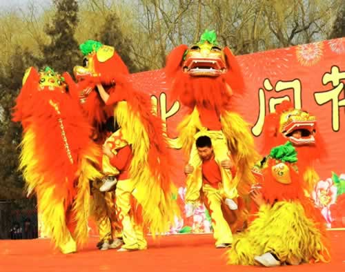 北狮是盛行于中国长江以北地区的一种汉族传统舞狮技术。北狮与南狮的构造形状和起舞办技术都有显著的不同,北狮和南狮都是多姿多彩而富有舞蹈性的汉族民俗文化,北狮比较著名的计有安徽之青狮,河北保定双狮。北 狮舞法的基本动作有:愕、怕、喜、爬、蹲、退、滚等,配合柔顺、活泼、灵巧、神采、愉快、轻盈的步法,把狮子舞得惟妙惟肖。其眼睛、嘴巴、耳朵会开动,此种技术重于扑、跌、翻、滚、跳跃、擦痒等动作。